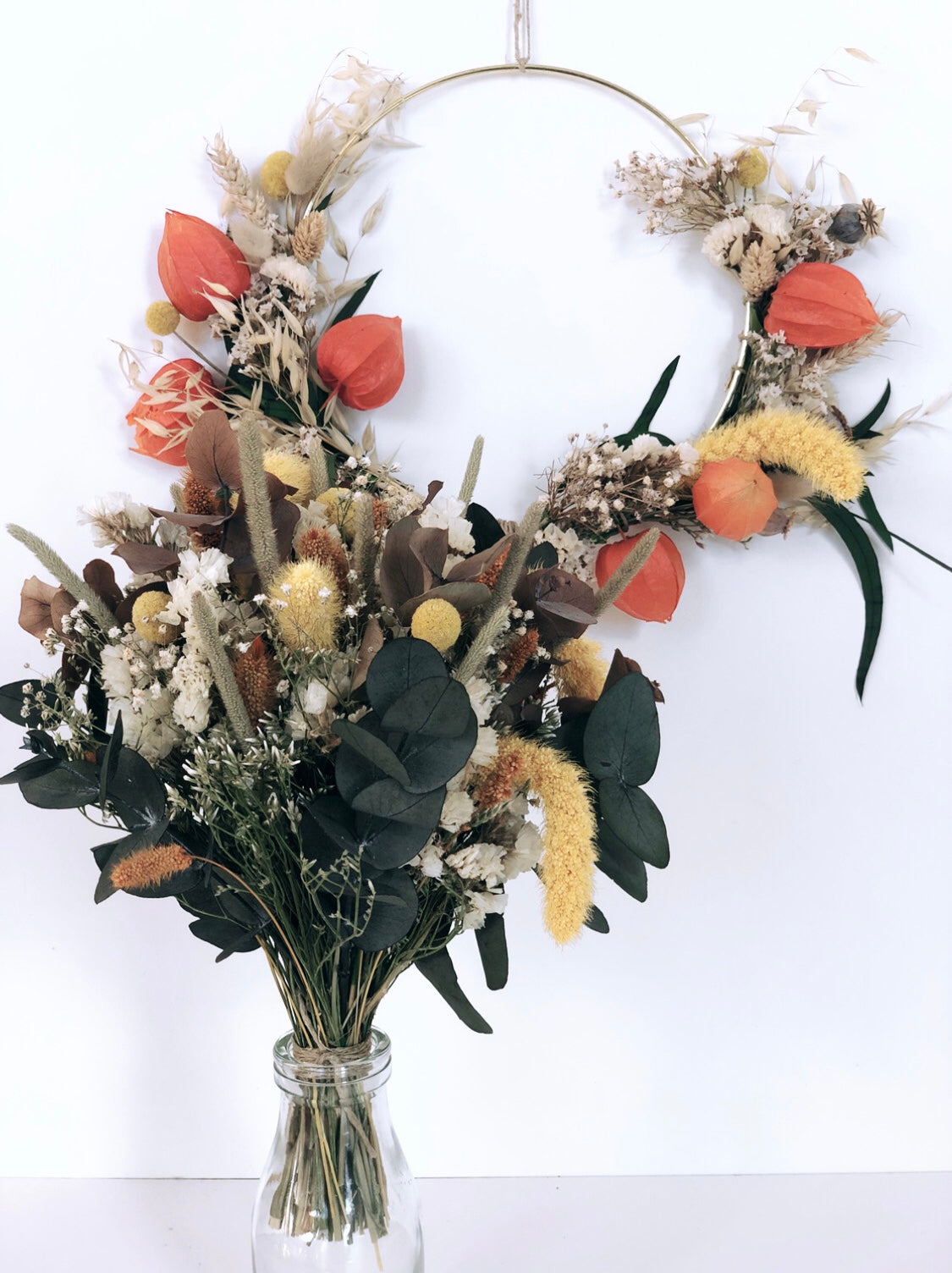 Optez pour l'élégance florale de nos couronnes en fleurs séchées, idéales pour un bel événement ou simplement pour apporter une touche de nature à votre quotidien.